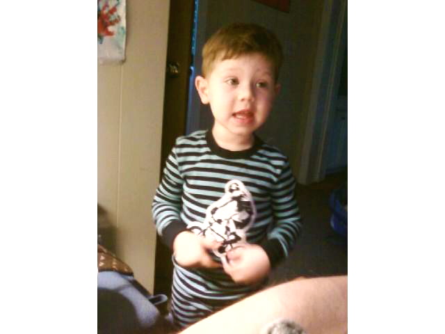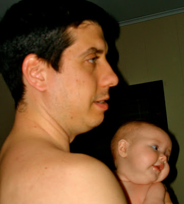 I have absolutely no idea why Alice's hair looks so dark in this photo...it's actually mostly reddish. With that oddly-hued little tuft of hair she looks a lot more like her dad. What I really like about this photo is something I didn't notice when I first took it--the very threatening raised fist. "Mess with my brutha, and I will bring the pain." Watch out folks, that's nearly 18 lbs of business comin' at you.